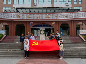 图为联合支部党员于中国工农红军强渡大渡河纪念馆门口合影