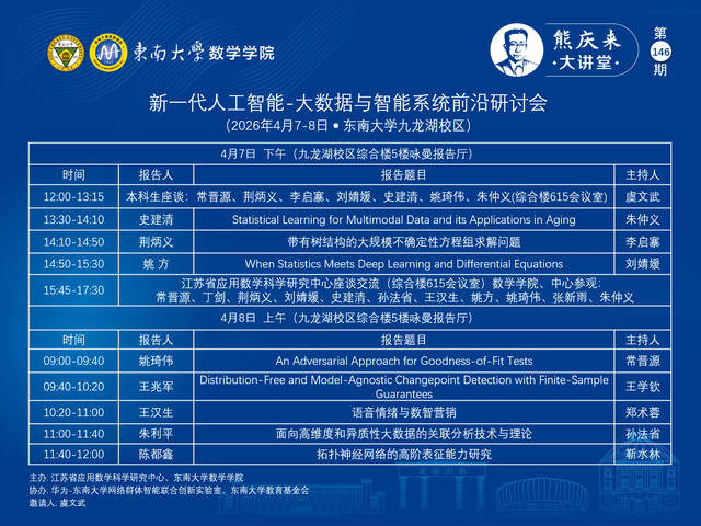 熊庆来大讲堂146期:2026. 04. 07 ~2026. 04. 08 - 新一代人工智能-大数据与智能系统前沿研讨会